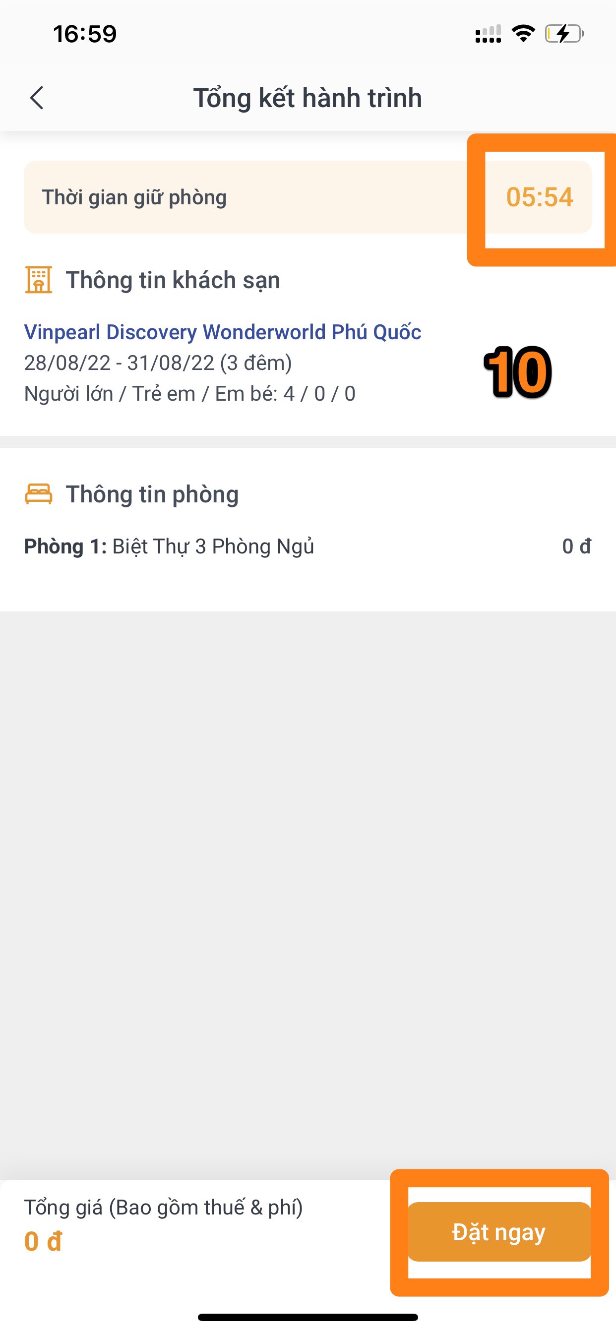Bước 10: Đặt ngay (Lưu ý kể từ bước này đồng hồ sẽ đếm ngược giữ chỗ trong vòng 6 phút, nếu các bước về sau các bác thao tác quá 6 phút thì sẽ phải thao tác lại từ đầu nhé) (Ảnh 10)