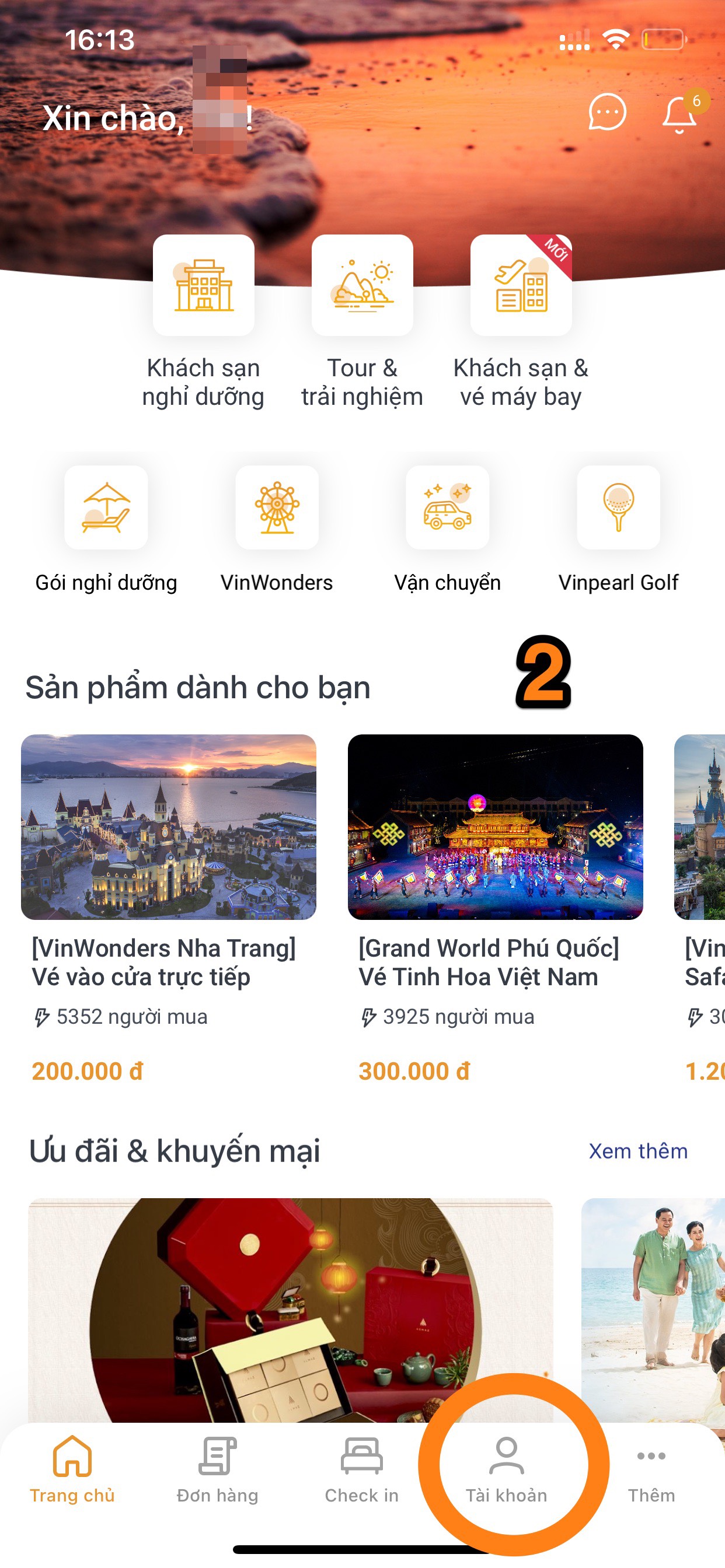 Bước 2: Sau khi đăng nhập chọn Tài khoản (Ảnh 2)