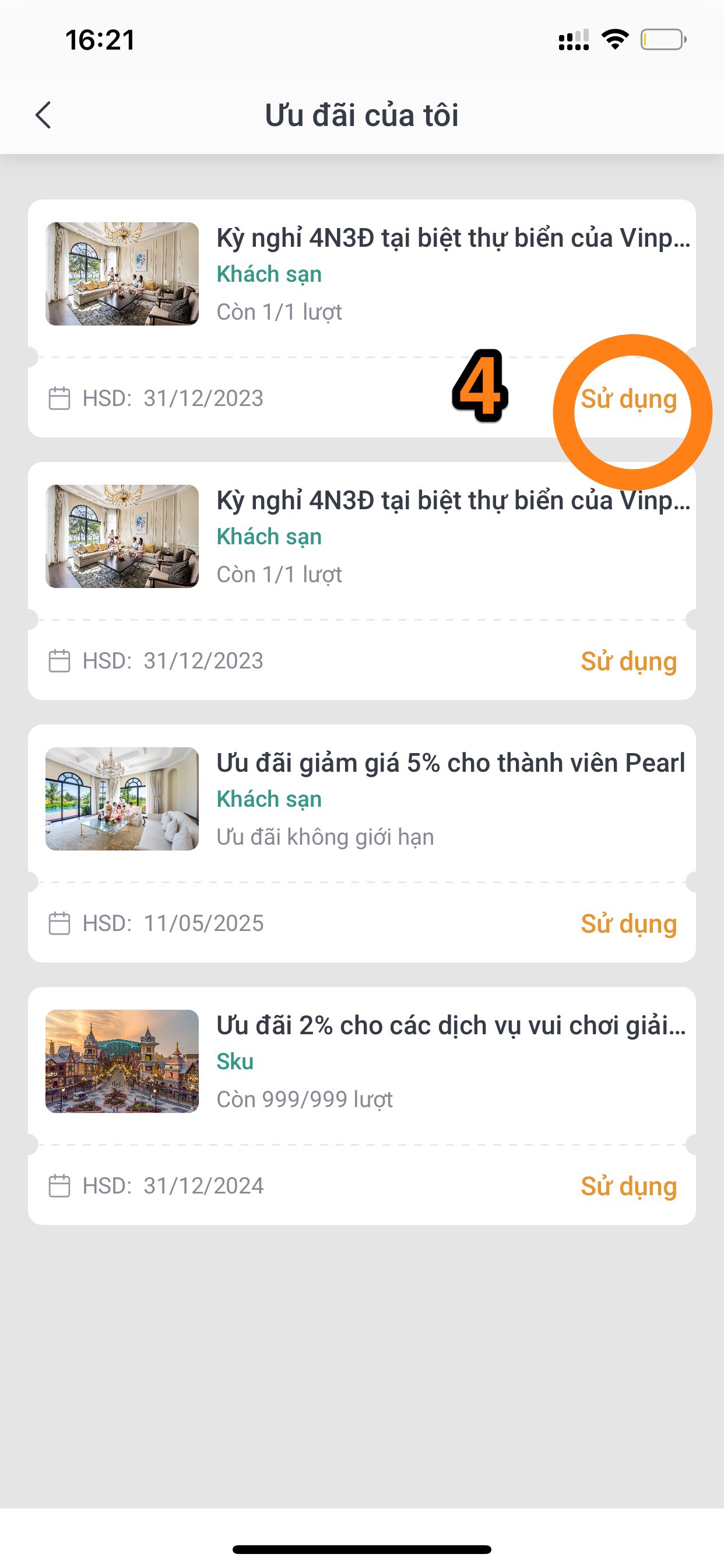 Bước 4: Chọn Sử dụng (1 trong 2 voucher nếu đi 4 người lớn 4N3Đ) trường hợp muốn sử dụng cả hai voucher cùng 1 lúc cho 8 người lớn thì ib riêng e bật mí bí kíp nhé. (Ảnh 4)