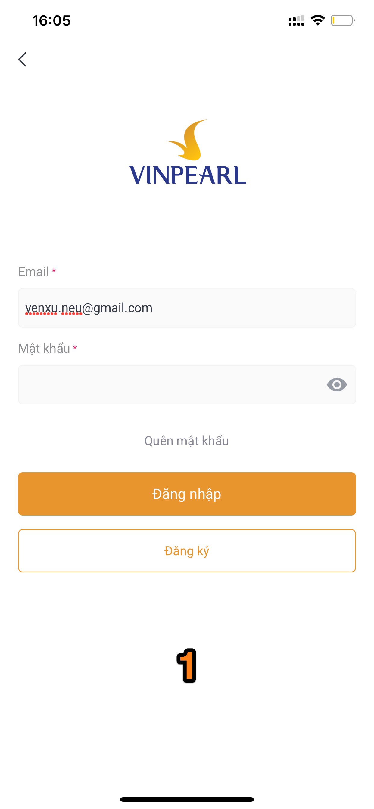 Bước 1: Tải app My Vinpearl hoặc thao tác trên trang web Vinpearl.com. Đăng nhập bằng email và mật khẩu được cung cấp qua email sau khi kích hoạt hoặc chọn quên mật khẩu (Ảnh 1)