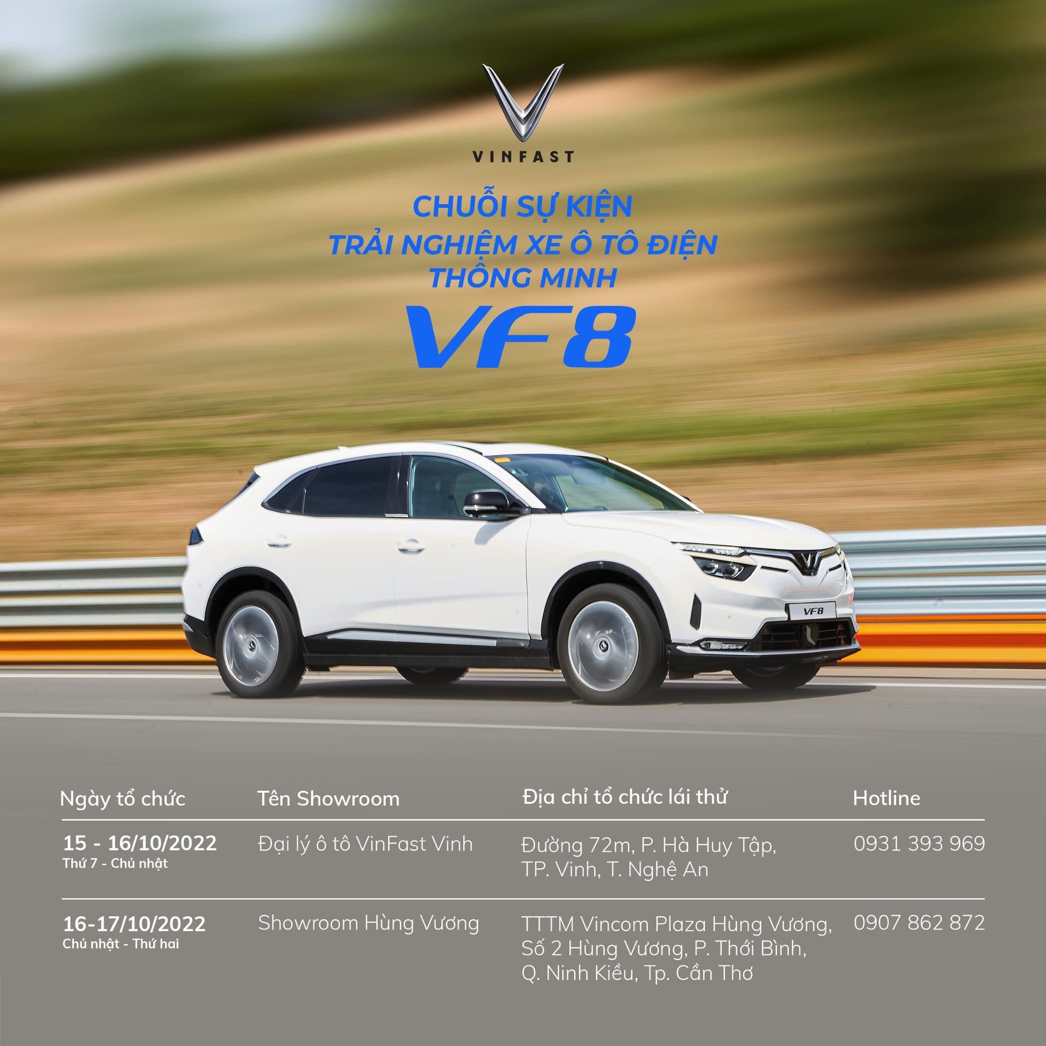 • Sự kiện lái thử VF8 diễn ra tại Cần Thơ vào ngày 16-17/10/2022