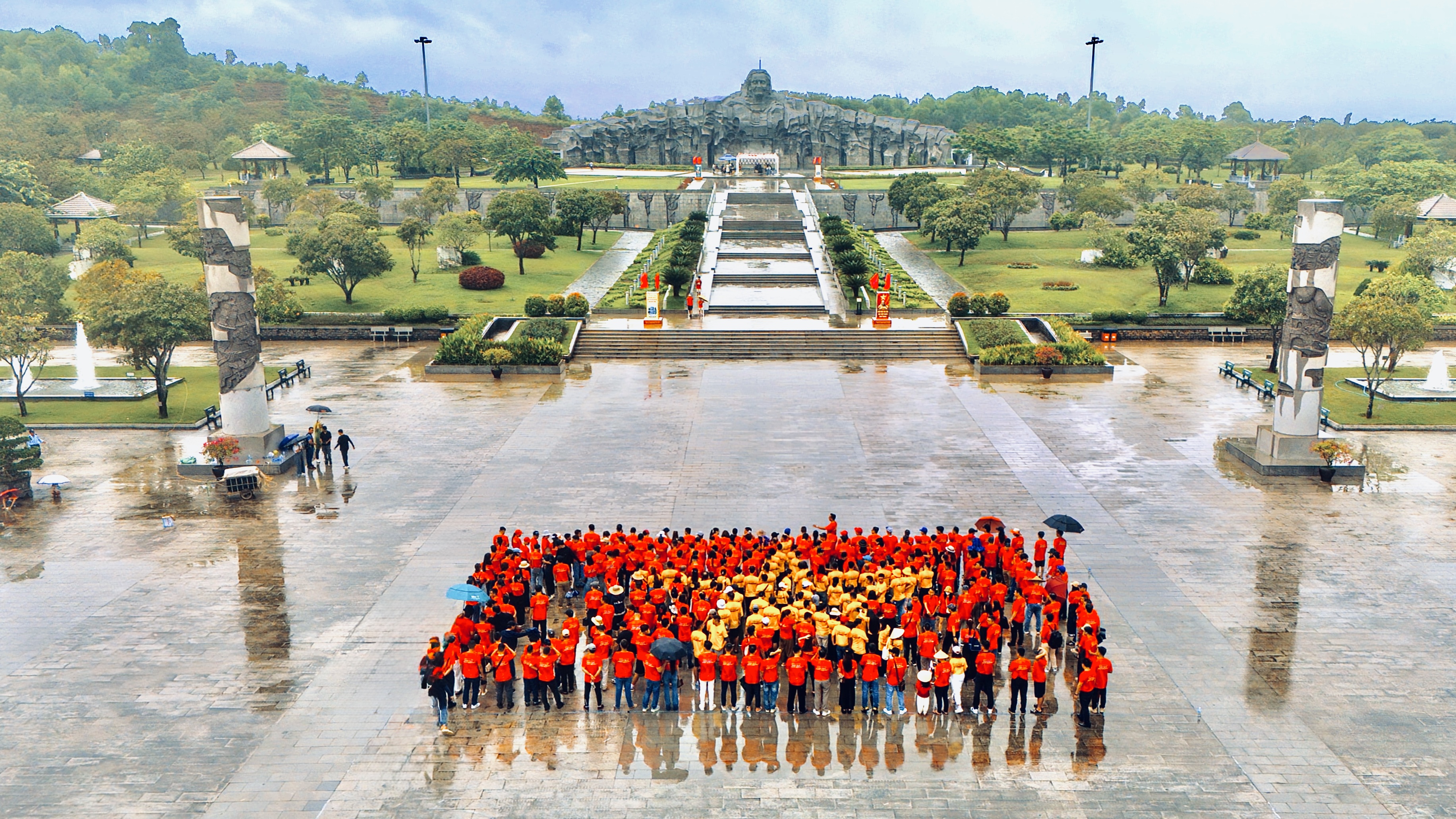 Ngay sau nghi thức, 500 thành viên đồng diễn xếp thành hình lá cờ Tổ quốc khổng lồ, nền đỏ sao vàng rực rỡ ngay giữa cơn mưa. Hình ảnh ấy, thiêng liêng và hùng cường, như một bản hùng ca không lời, khắc sâu vào ký ức mỗi người.