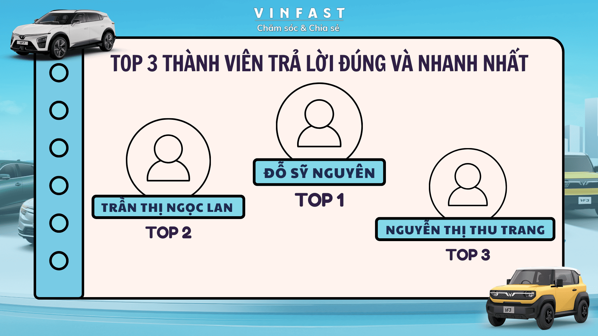 Xin chúc mừng Top 3 “Cao thủ kiến thức VinFast” tuần [số 1]: