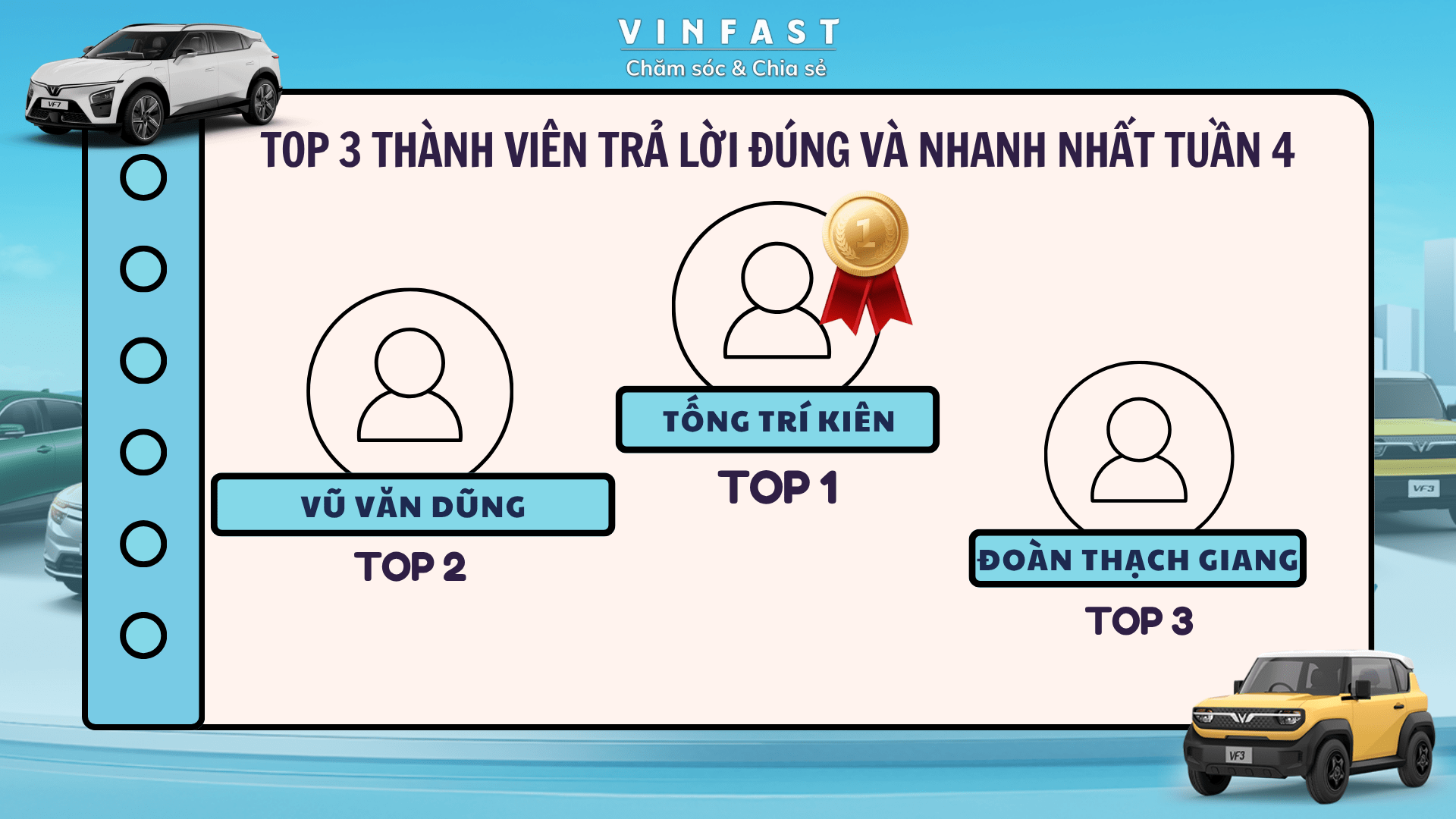 Xin chúc mừng Top 3 “Cao thủ kiến thức VinFast” tuần [số 4]: