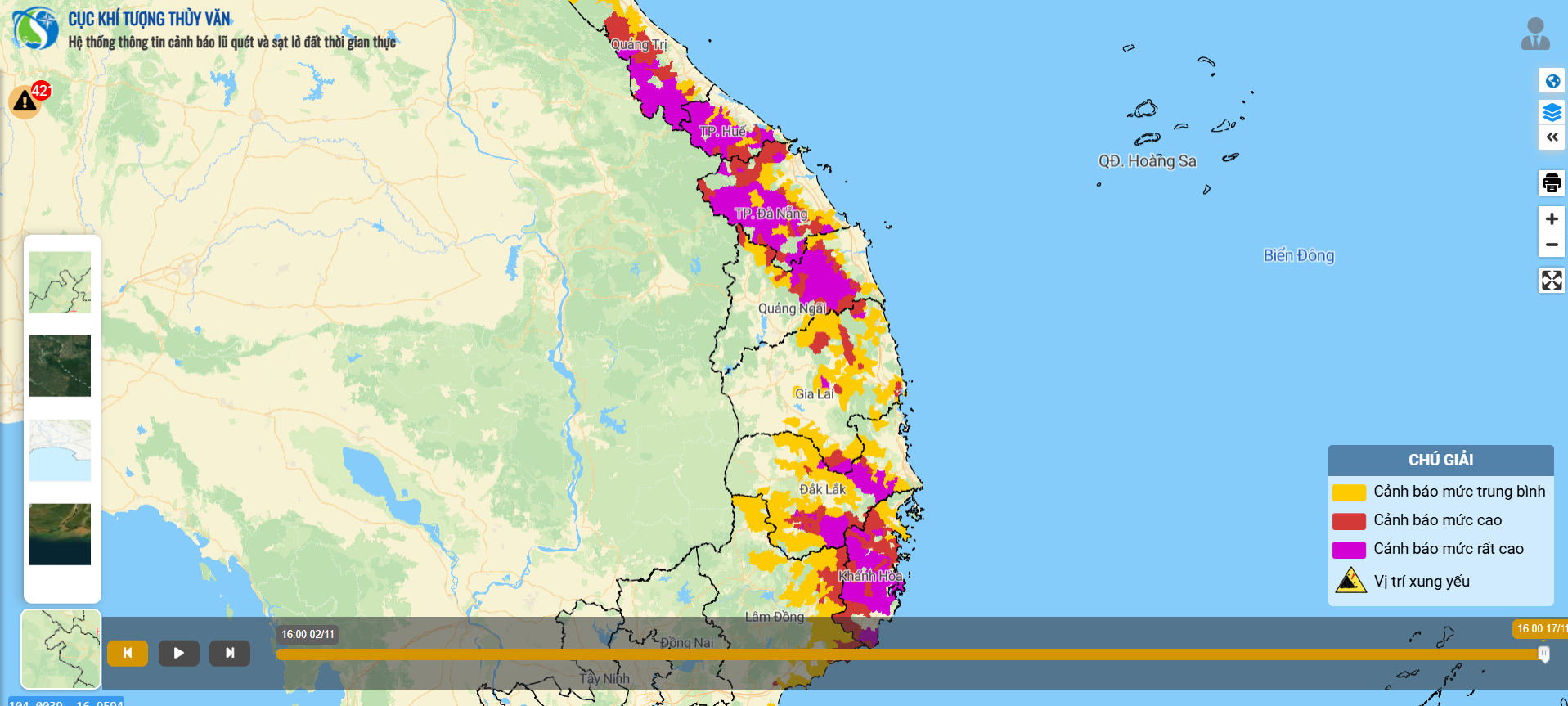 Theo Trung tâm Dự báo Khí tượng Thủy văn Quốc gia, từ nay đến ngày 20/11, khu vực từ Hà Tĩnh, Quảng Trị, Thừa Thiên Huế, TP. Đà Nẵng, Quảng Ngãi đến các tỉnh phía Đông Đắk Lắk, Khánh Hòa được dự báo có đợt mưa lớn kéo dài, với tổng lượng mưa phổ biến 200–450 mm, cục bộ có thể vượt 700 mm. Mực nước trên các sông chính được dự báo lên mức báo động cao, tiềm ẩn nguy cơ ngập lụt diện rộng, lũ quét, sạt lở đất và gây ảnh hưởng trực tiếp đến việc đi lại.