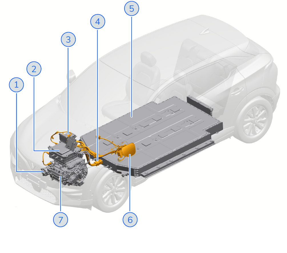 Hệ thống điện áp cao trên xe điện VF 6 được thiết kế với các bộ phận chuyên biệt, mỗi thành phần đảm nhận một chức năng riêng biệt: