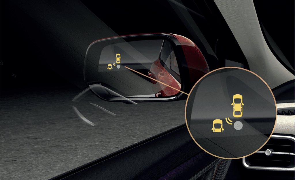 BSD là hệ thống hỗ trợ nhận biết phương tiện nằm trong vùng khuất tầm nhìn ở hai bên hông xe. Khi cảm biến phát hiện một phương tiện di chuyển trong vùng này, biểu tượng cảnh báo trên gương chiếu hậu sẽ sáng hoặc nhấp nháy, giúp chủ xe đưa ra quyết định chuyển làn an toàn hơn. Trên VF 8, biểu tượng chỉ hiển thị khi thỏa các điều kiện kích hoạt đã được thiết kế để giảm cảnh báo sai trong bối cảnh tốc độ thấp hoặc dừng đỗ.